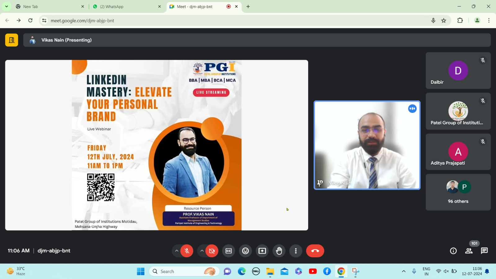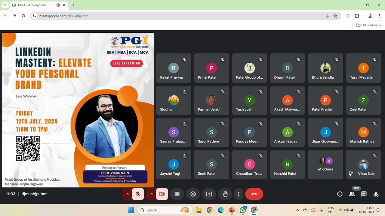 We had the honor of being a guest speaker at a webinar organized by the Patel Group Of Institutions, Gujrat for MBA and MCA students. The session focused on LinkedIn Mastery and how students can elevate their personal brands.